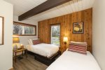 Two private bedrooms, one with Queen bed, another with two Twin beds